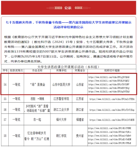 学生于文斐、张春荣、魏田莹、董娉娉主讲的作品《“绿”里摘金——探索寿光乡村振兴“新”密码》(指导老师:于婷、陈晨、吴宪)在1339所高校5007部参赛作品中脱颖而出,荣获全国本科组一等奖。