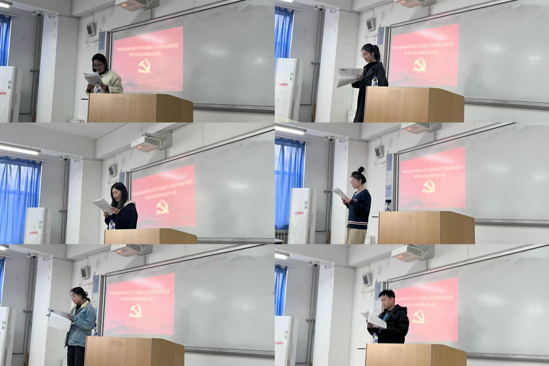 会议严格按照党员发展流程进行,发展对象李涵、李静、刘子涵、刘贵敏、方丽颖、许文龙宣读《入党志愿书》,并汇报个人情况,表达了加入中国共产党的坚定决心和热切期盼。入党介绍人围绕发展对象的思想觉悟、学习工作情况等进行介绍,并对其能否入党表明肯定意见。随后,支部委员会向全体党员汇报审查情况和确定发展的意见。经无记名投票表决,一致同意接收李涵等同志为中共预备党员。最后,党支部书记李岩磊对新接收的预备党员表示祝贺,希望李涵等同志要不断加强学习,时刻以一名优秀的党员标准要求自己,党员不仅仅是一个称号,更重要的是党员的责任和义务,在日后的学习和生活中要发挥好模范带头作用。