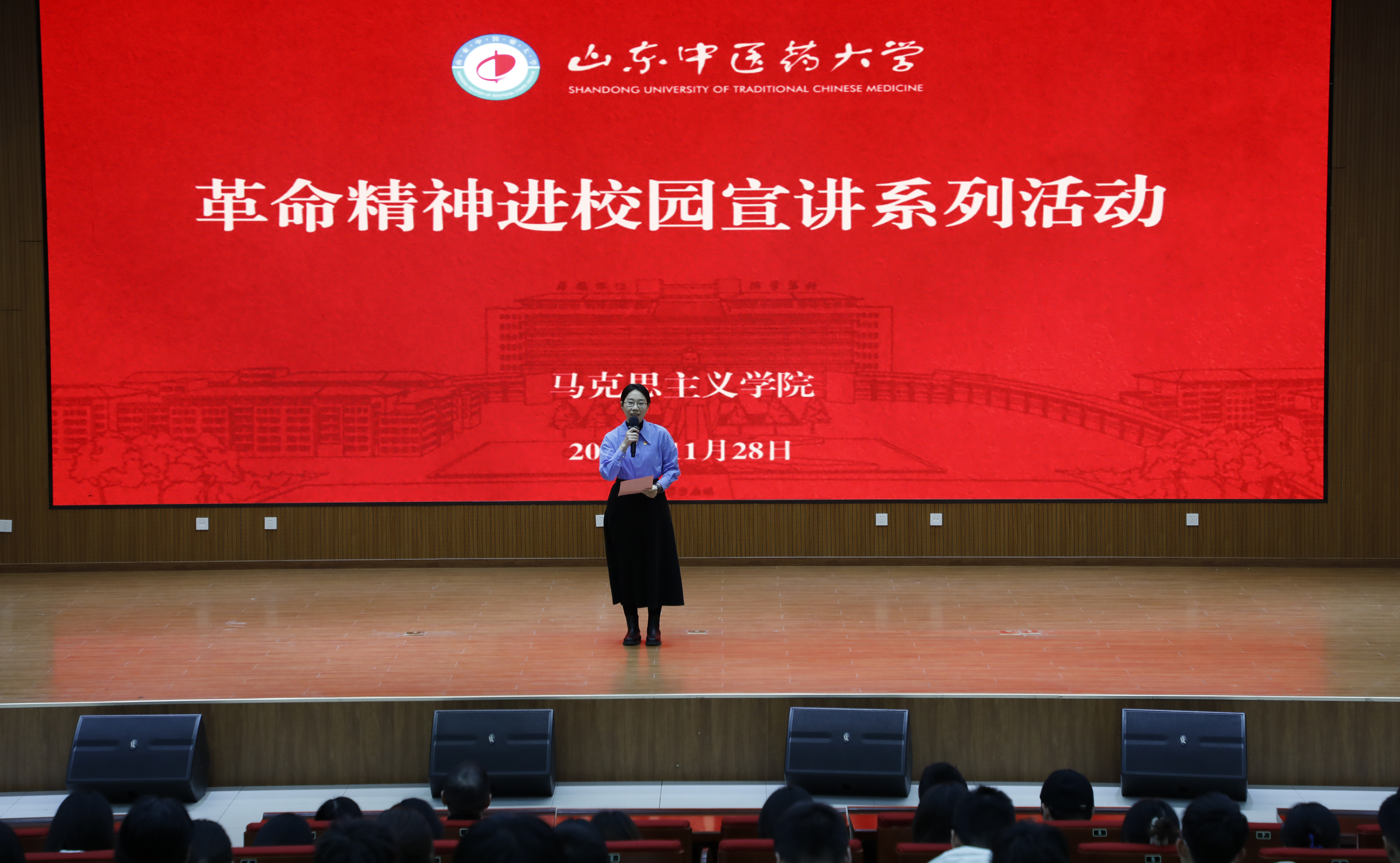 在药物研究院三楼报告厅举办“大思政课”实践活动暨革命精神进校园宣讲活动。济南市委党校大峰山现场教学基地综合部主任房伟、禁漫