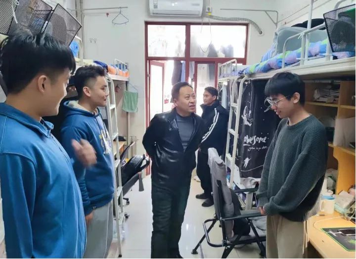 党委书记陈众、副书记郭鹏及辅导员孟祥翔深入学生宿舍开展安全教育检查,陈众重点查看了学生宿舍用电安全、消防安全、内务卫生等方面的情况,听取了同学们反映的实际问题,叮嘱同学们务必筑牢安全底线,增强安全意识,保护好自身生命财产安全,营造平安和谐的宿舍氛围。