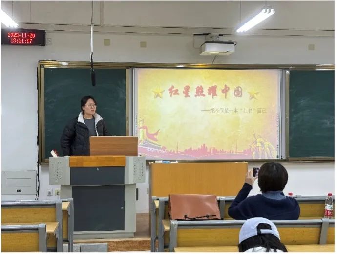 2022级硕士研究生李先萍同学则分享军事专家、国家安全战略问题专家金一南创作的纪实文学《苦难辉煌》一书,本书再现了中国共产党自成立、创建人民军队到抗日战争爆发前十多年间艰苦奋斗的历程,写作方式新颖活泼、引人入胜。