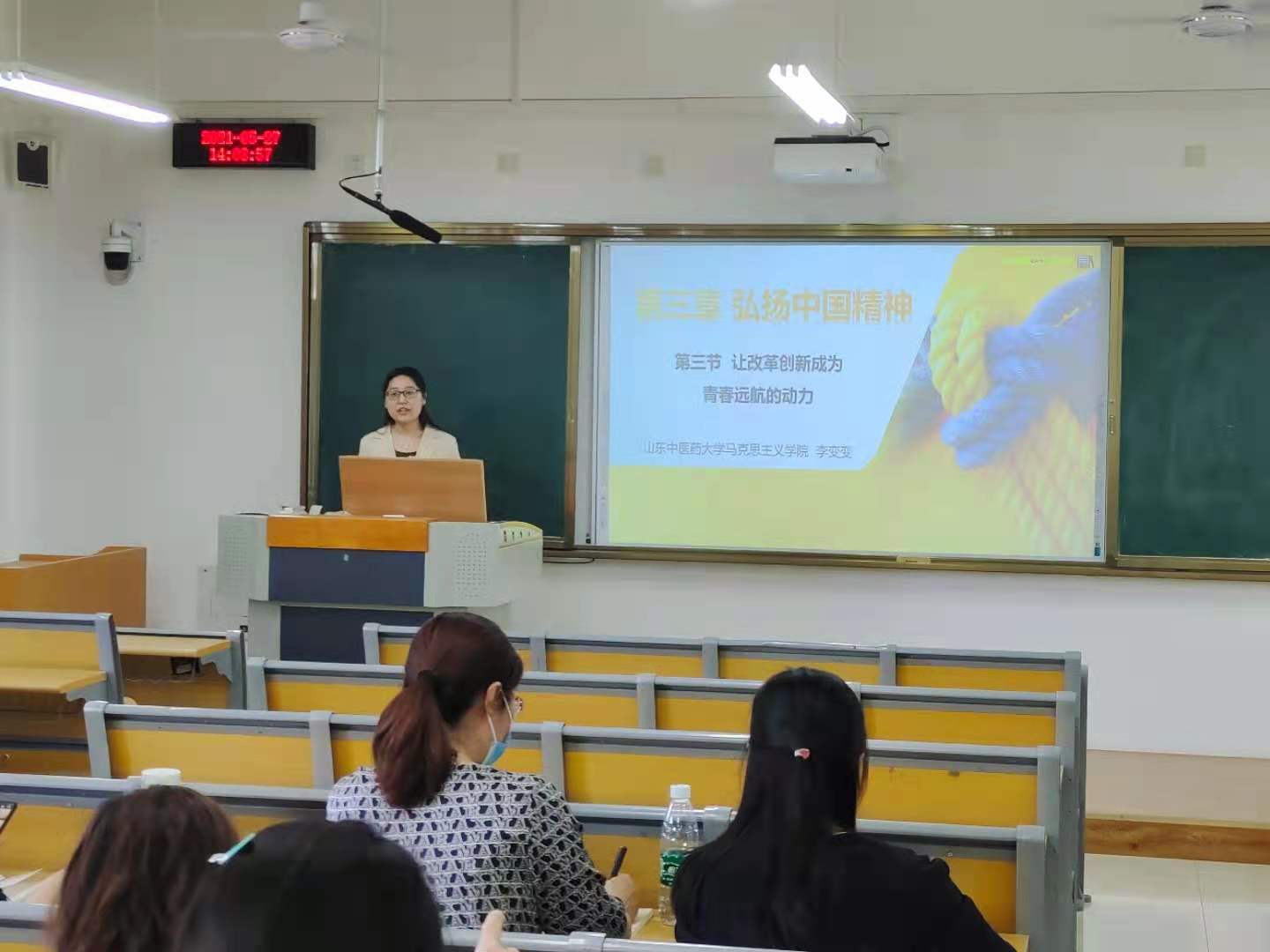 李变变、徐晨歌,体育教学部赵金娜、王瀚涛四位教师先后进行示范教学,在讲课过程中四位教师旁征博引,利用学生们所熟知的中医药故事和医学人物具体阐述相关思政理论,深入浅出地讲解重点与难点。本次活动进一步增强了教师的“课程思政”理念,提升了教师挖掘思政元素融入课堂教学的技巧,做到思政课和专业课“双融”,思政课程与课程思政同向同行,让思政课和专业课更有味道,达到育人‘润物细无声’的效果。