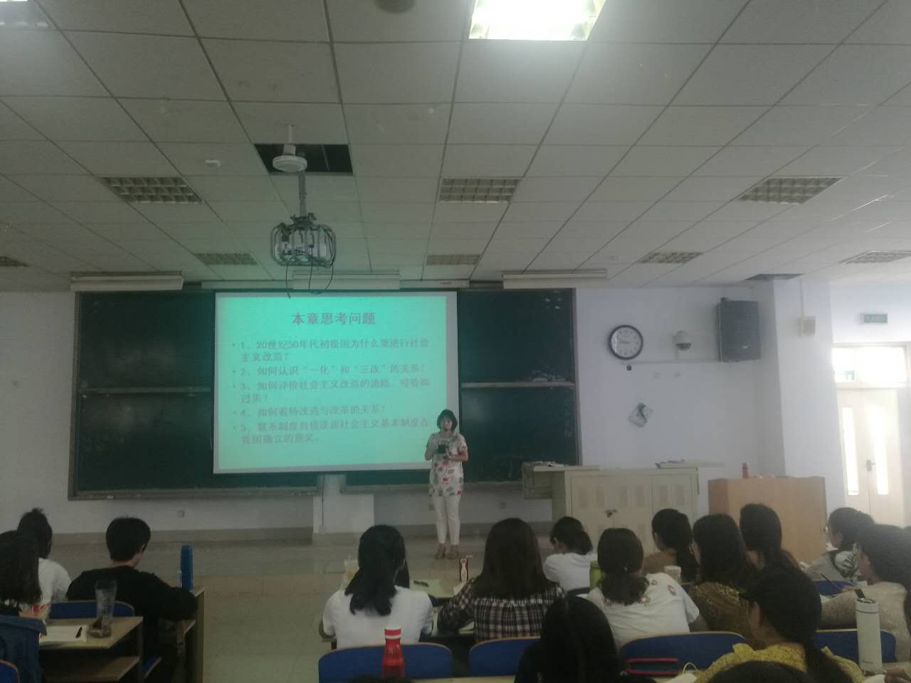 荆教授充分肯定了甄红菊老师讲授的《毛泽东思想与中国特色社会主义理论体系概论》和王洪洁老师讲授的《中国近现代史纲要》的教学质量以及学生在课堂上的良好风貌。认为两位老师教材运用得当、教学目标清晰,同学们能够积极认真听课,师生互动良好,课堂气氛活跃,取得了很好的教学效果。课后荆教授与任课教师进行了交流,对教学中如何使重点更突出、理论观点更明确、更好地把握学生需求等问题进行了指导。